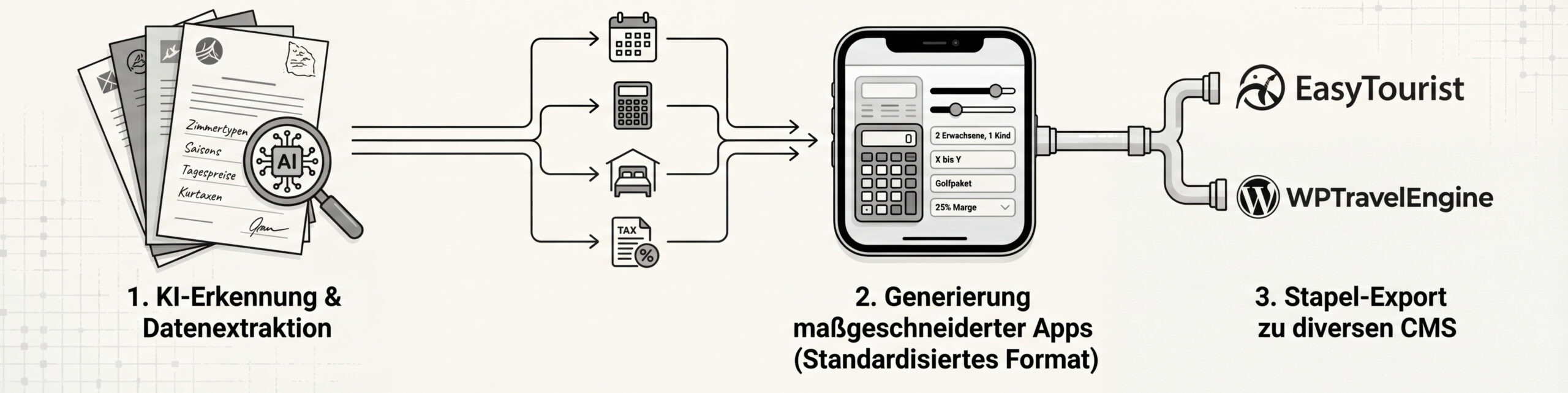 AI-TravelEngine verwandelt komplizierte Preiskalkulationen von Reisen und aufwendiges Verwalten von Buchungsterminen auf Webchannels in eine Sache, die wieder Freude bereitet.