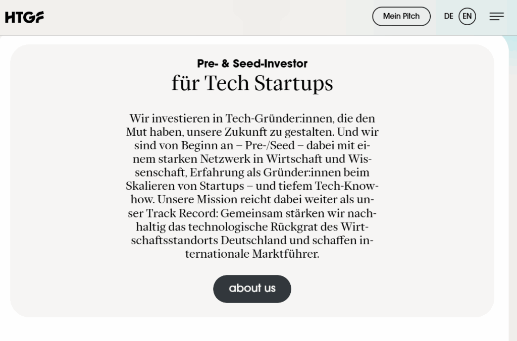 - Wird teilweise über Partnernetzwerke/Programme (z. B. EXIST, regionale Förderbanken) mit HTGF kombiniert.
